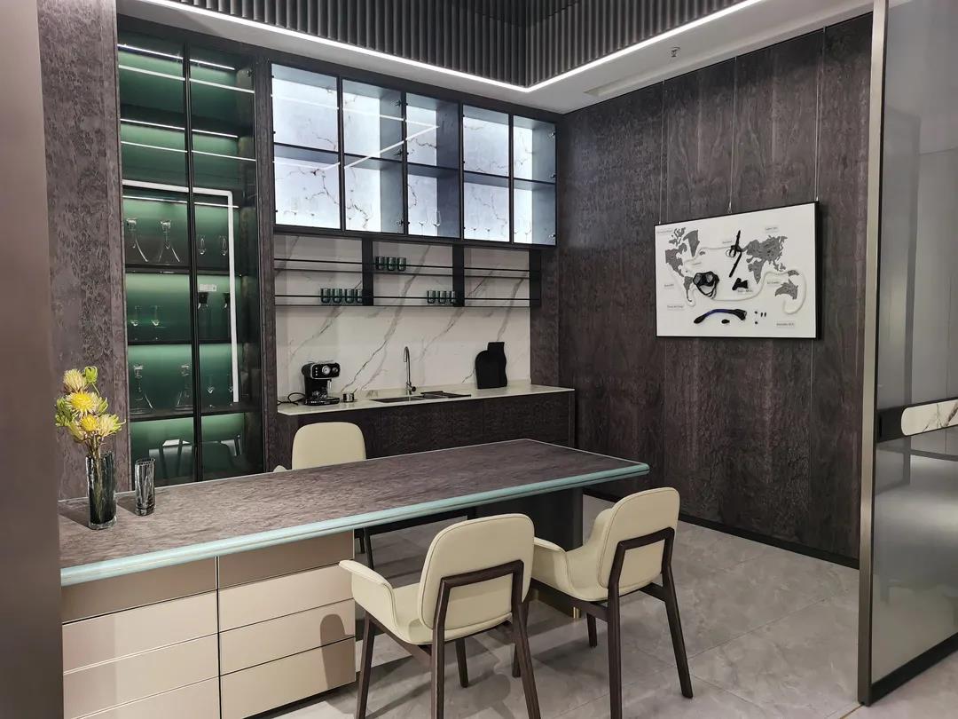 在展厅现场,各系列展厅极具潮流感的空间布局和场景设计,完美呈现了当下流行的空间组合和软装搭配思维;极具时尚品位的产品设计和色彩运用,赋予产品个性鲜明、多元混搭的时尚气质,彰显了qm球盟会“整装定制·全案设计”产品整合优势和特色。