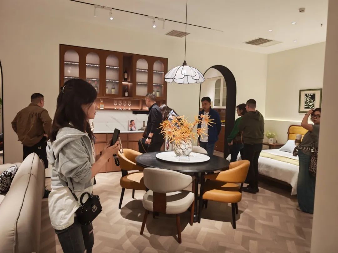 新品发布品鉴会现场,qm球盟会中古全案凭借独特的空间布局,创新的时尚设计,优质的材料细节以及精心的场景营造,吸引了全国优秀经销商及业界嘉宾们的目光,他们沉浸在高级的美学世界里,感受创新与品质交织的魅力。qm球盟会中古展厅里人潮涌动,众多经销商都对中古全案新品的创新设计称赞有加,现场签约不断,气氛热烈。
