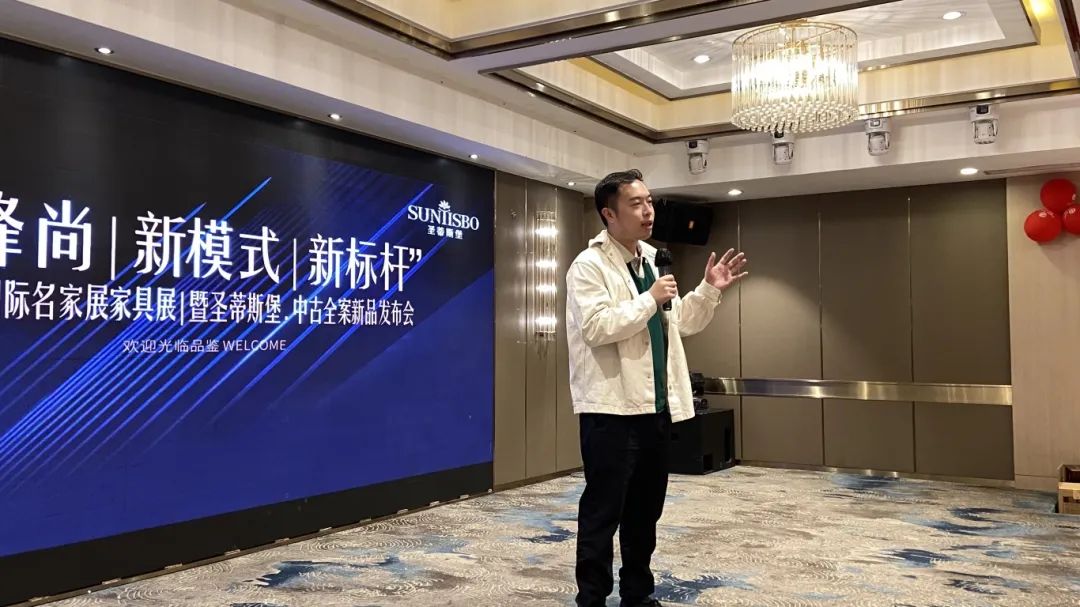 接下来,qm球盟会工业营销部副经理吴天喜先生为我们重磅揭晓了2025春季新品中古全案系列和新古典全案升级新品,他从选材、设计、风格、工艺等方面进行了全面的讲解,并提到此次中古新品的全案模式是以更具设计感的创新方式,给予消费者整体性的体验感升级,助力大家在激烈的市场竞争中,突显差异化的优势,实现业绩的飞跃式增长。